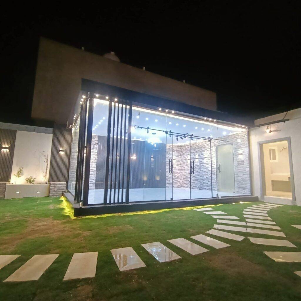 تنسيق حدائق القصيم يصمّم وينفذ الغرف الزجاجية لتوفير مساحة أنيقة ومغلقة للاستمتاع بالحديقة في جميع الأوقات. نستخدم مواد قوية وآمنة لضمان المتانة وطول العمر. التصميم يضيف بعد جمالي عملي ويتيح الاستفادة من الحديقة مهما كان الطقس.