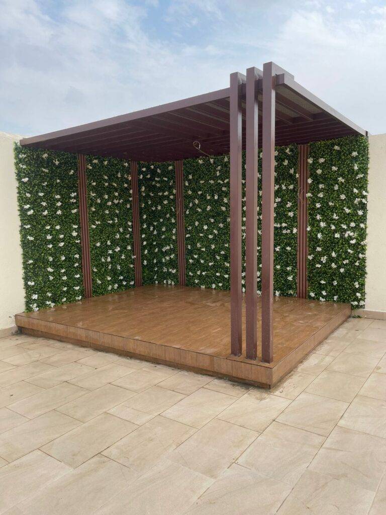تنسيق حدائق القصيم يوفر تركيب المظلات والجلسات الخارجية لتوفير أماكن مظللة ومريحة للجلوس. نضمن متانة التركيب وحمايته من العوامل الجوية. التصميم يركز على الراحة والجمال لخلق أجواء مثالية للاستمتاع بالحديقة.